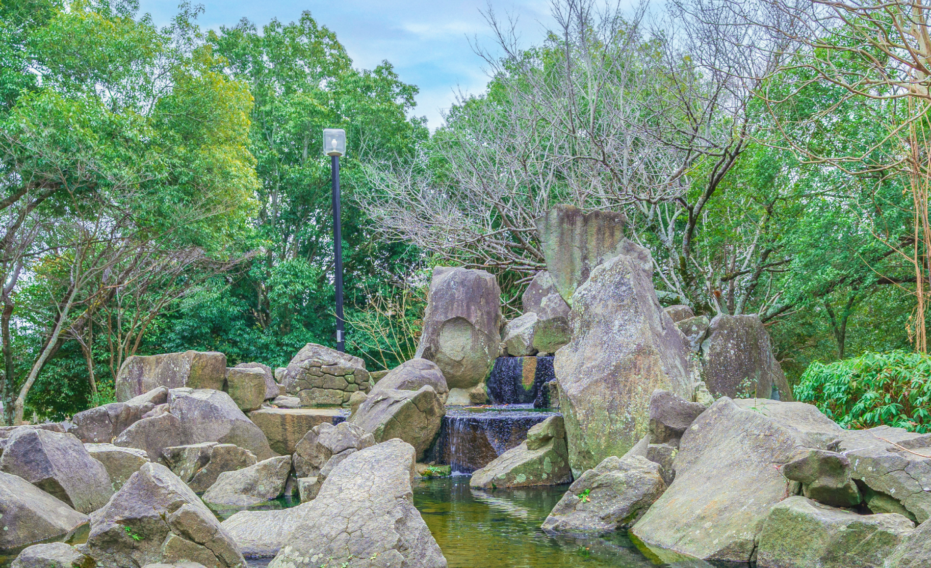 広大で豊かな自然環境の中に、アスレチック広場、バーベキュー広場、ピクニック広場、徒歩池、多目的広場、竪穴式住居広場、お花見広場等がある総合公園。