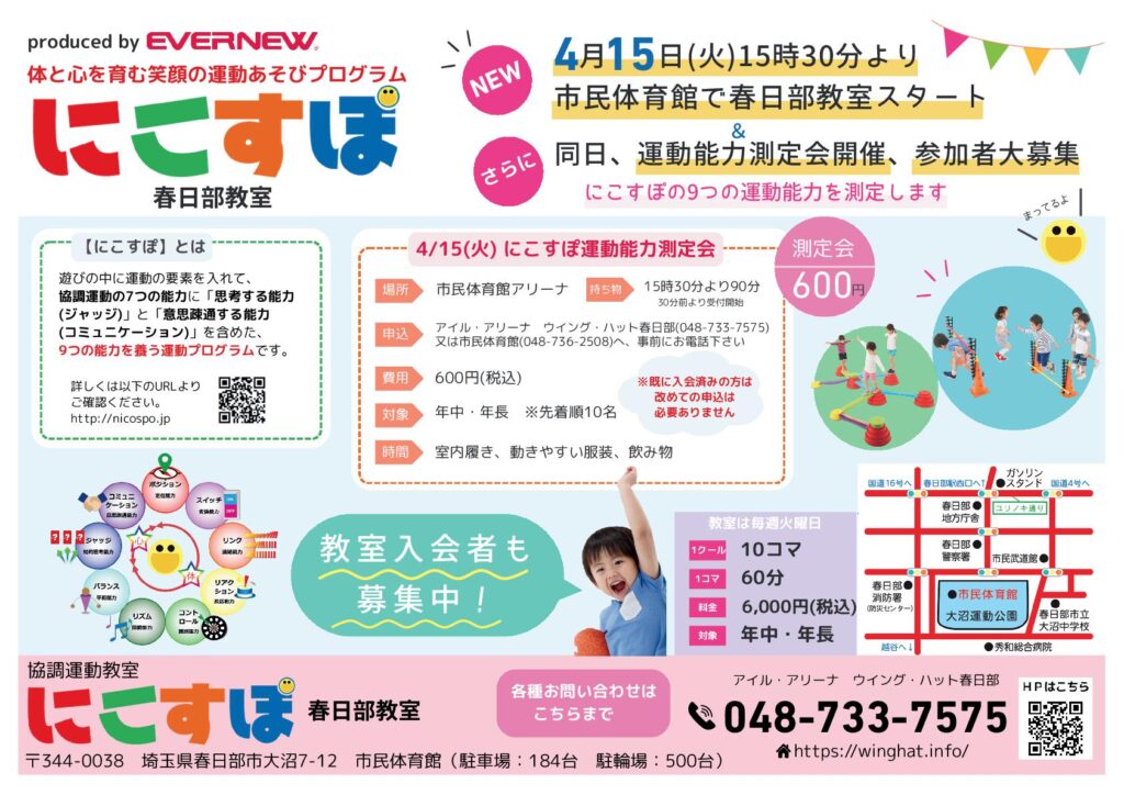 Wednesday, held once a month 1:00 PM – 1:30 PM (※Please check Wing Hat Kasukabe for dates and times under ●Program Classes.)