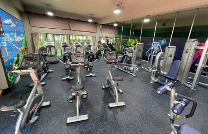 ラットプルダウン1台、シーテットロウ1台、オーバーヘッドプレス1台、チェストプレス1台、レッグプレス1台、レッグエクステンション1台、腹筋台1台、アップライトバイク4台、リカンベントバイク4台、トレッドミル4台、トーソローテーション1台、ガンレット1台、フリーウエイト類(ダンベル1kg~10kg)、体成分測定器 等