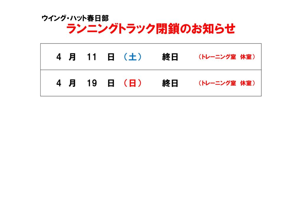 ランニングトラック閉鎖 2026年4月