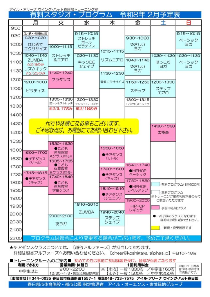 カテゴリートレーニング室のお知らせ、プログラム ウイング・ハット春日部