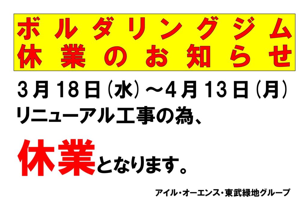 ボルダリングジムからのお知らせ