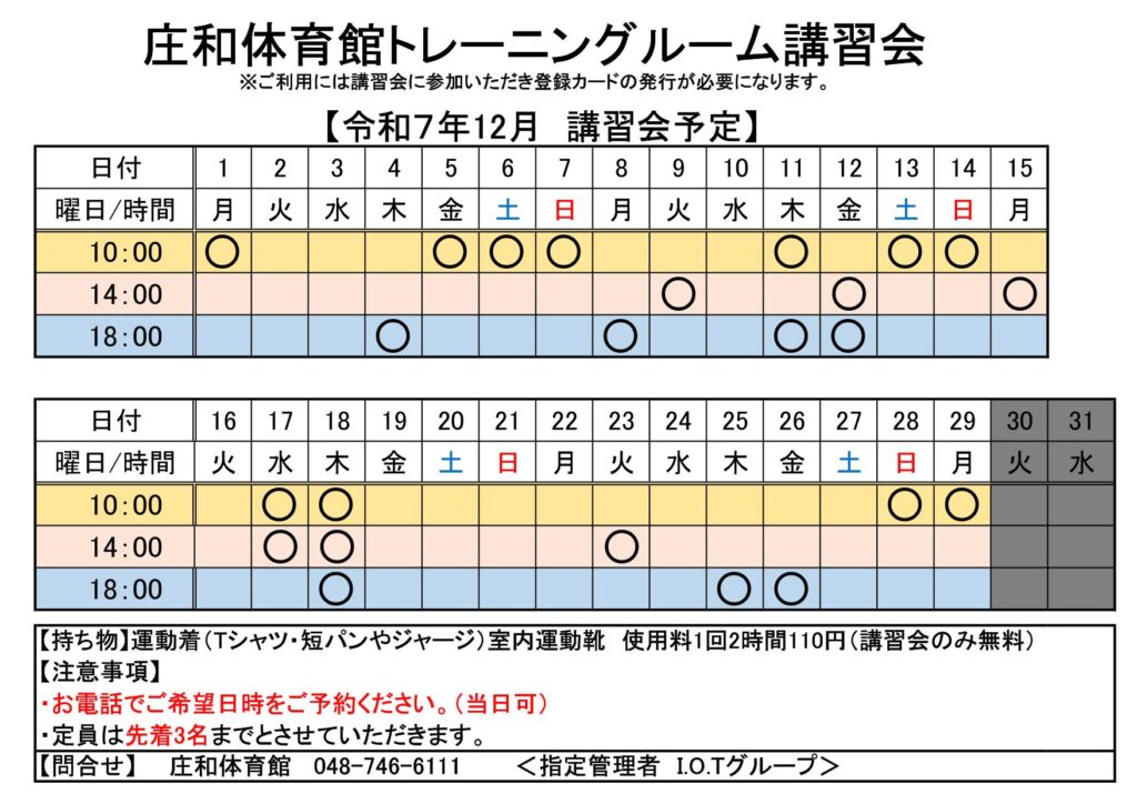 カテゴリートレーニング室のお知らせ、プログラム 庄和体育館